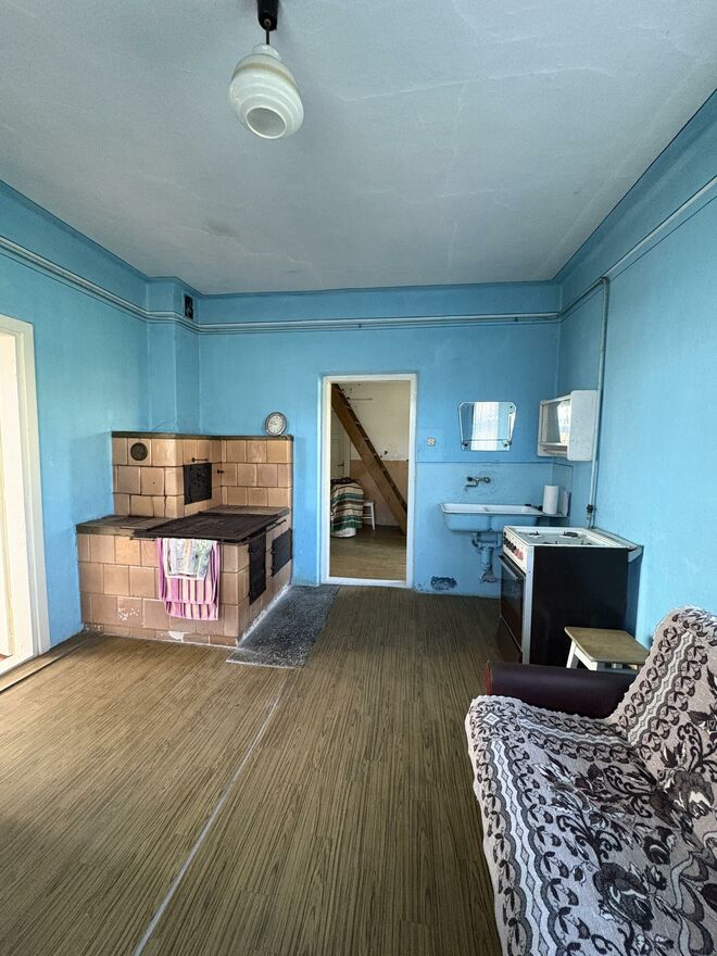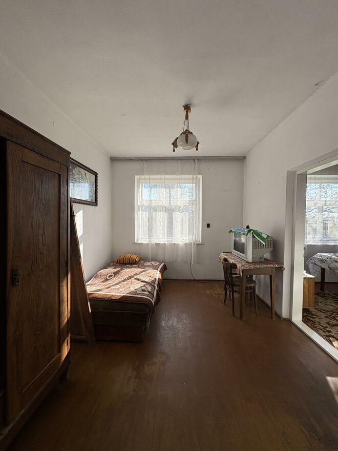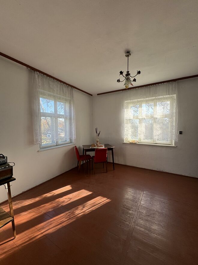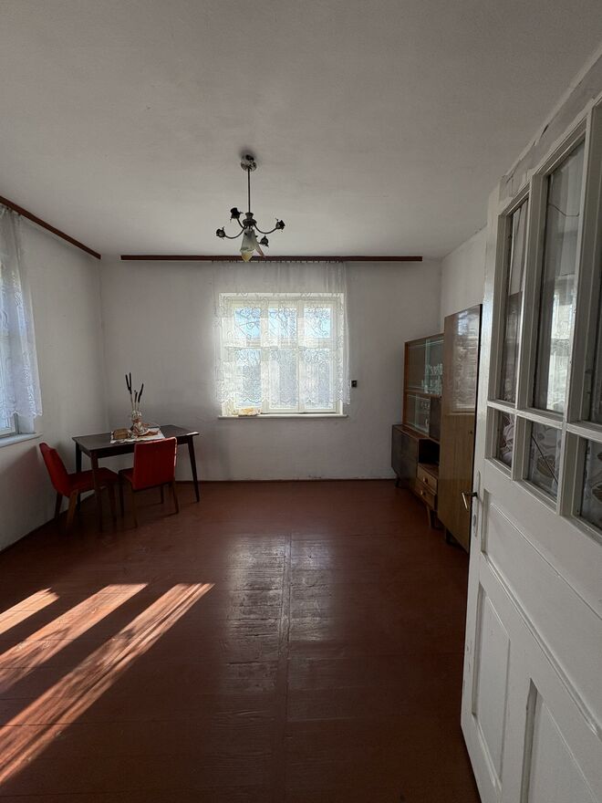 murowany dom o powierzchni ok. 100 m, w całości podpiwniczony, z możliwością adaptacji poddasza